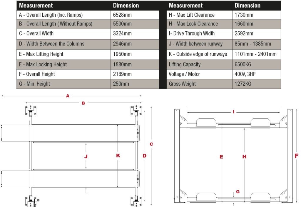 Con una capacidad de elevación de 6500 kg (14 000 lb), está diseñado para afrontar tareas exigentes. Equipado con plataformas giratorias delanteras y guardabarros traseros, ofrece la flexibilidad necesaria para una alineación precisa y reparaciones eficientes.