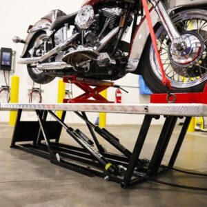 El kit de elevación para motocicleta es fabricado por BendPak, el mayor proveedor de la industria automotriz.